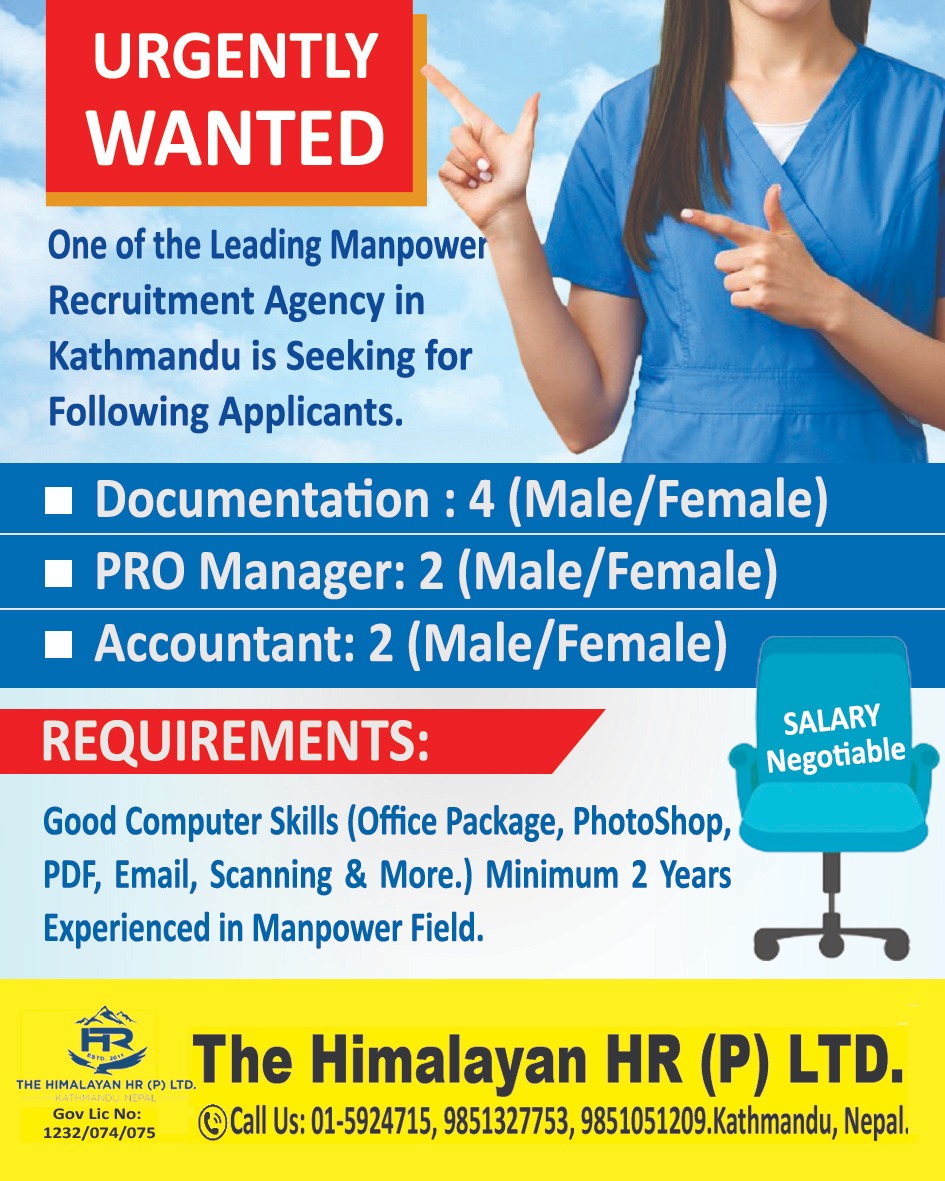 At The Himalayan HR, we offer a comprehensive range of staffing and recruitment services tailored to meet the diverse needs of our clients. Our services include temporary staffing to handle peak workloads, permanent recruitment to find long-term talent, executive search for senior-level positions, and HR consultancy to optimize your workforce strategies. We cater to various industries, including IT, healthcare, construction, and manufacturing, providing customized solutions that drive business success. Our commitment to excellence ensures that we deliver top-tier candidates who are the perfect fit for your organizational needs.